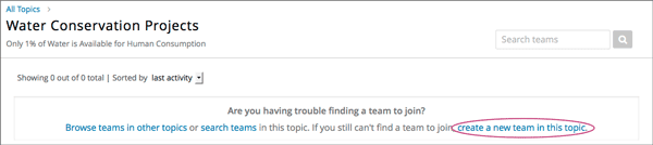 2. At the bottom of the list of teams within the team-set, select the create a new team in this team-set link.