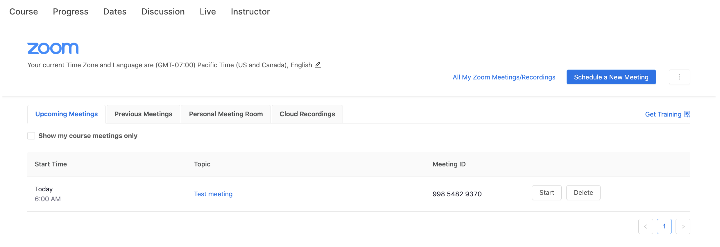 Instructors can use the LTI Pro app to schedule and start Zoom meetings and students can see and join these meetings to attend classes, office hours, study groups, etc. Learn more about the app here.