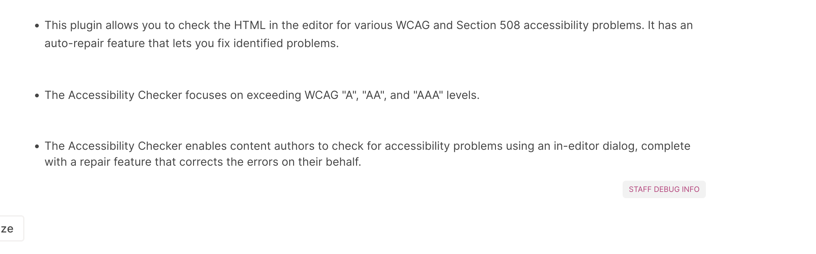 an image of a bulleted list in LMS in which you have chosen to “remove formatting” when you were in the editor. The bullets and text are correctly aligned.