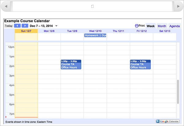 If your course includes a Google calendar, you see that calendar in the body of the course. You can also add it to your own Google calendar.