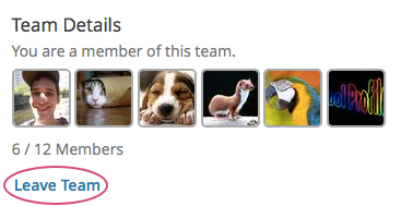 On the Team Details page, select Leave Team.