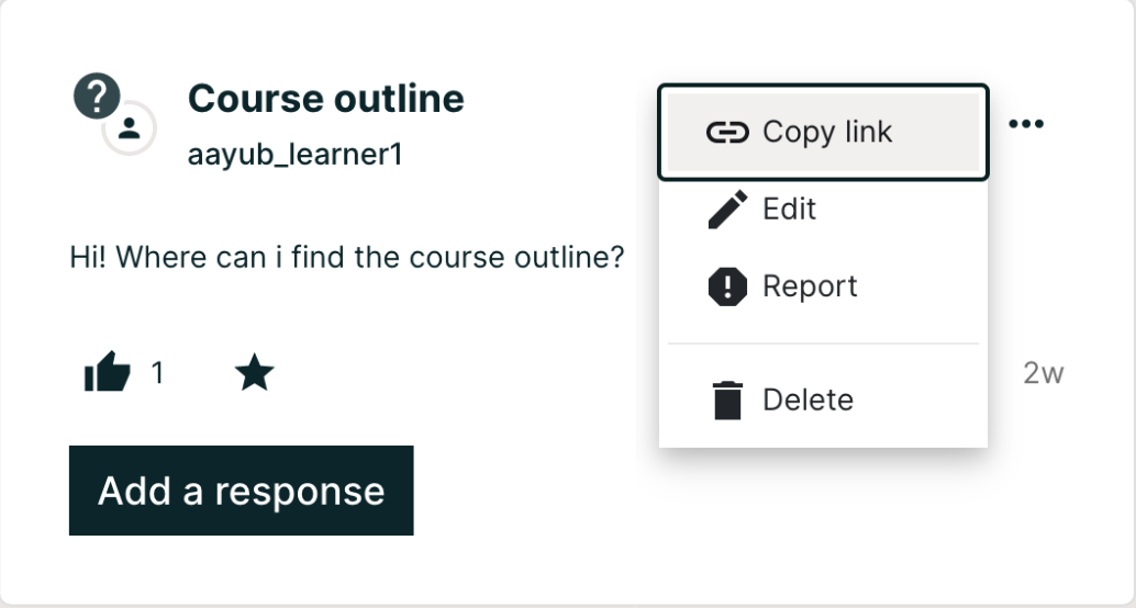 After you decide on a post type and topic, you can add your post on the Discussion page or in the body of the course.